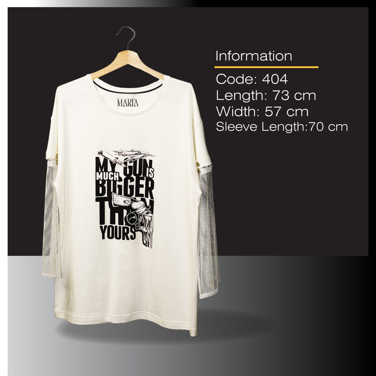 سایزبندی راحت: این تیشرت به صورت فری سایز ارائه شده و مناسب برای افراد تا سایز 42 است.